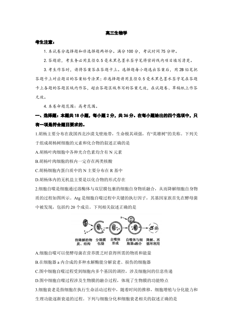 2024届江西省红色十校高三上学期9月联考 生物
