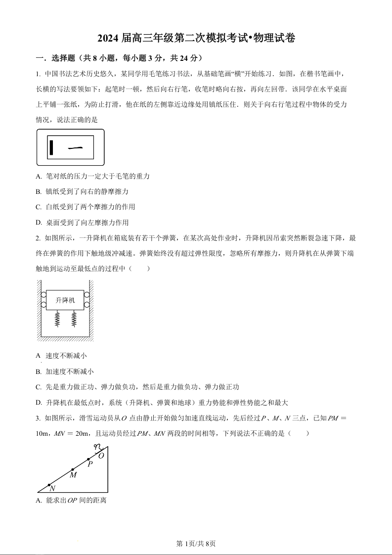 2024届河南省鹤壁市高中高三上学期第二次模拟考试 物理