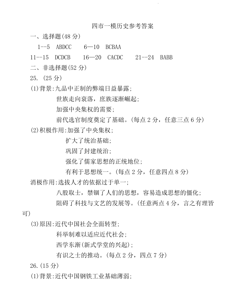 河南省平许济洛四市联考2023-2024学年高三上学期第一次质量检测 历史参考答案
