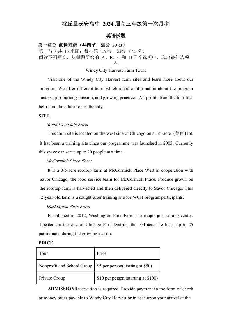河南省沈丘县长安高级中学2024届高三上学期第一次月考 英语