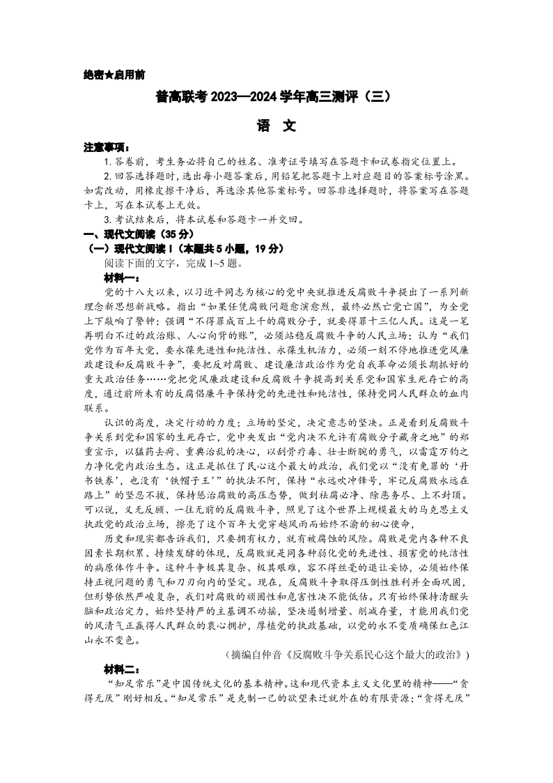 河南省普高联考2023-2024学年高三上学期测评(三)语文