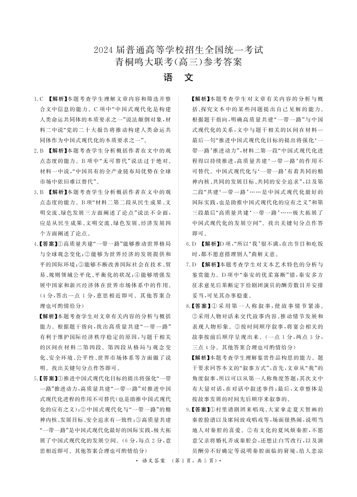 11月高三联考语文答案