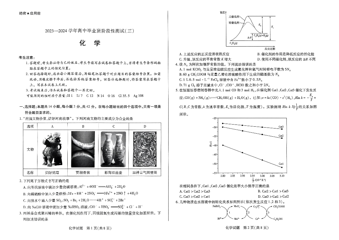 河南省天一大联考2023-2024学年高三上学期阶段性测试(三)化学