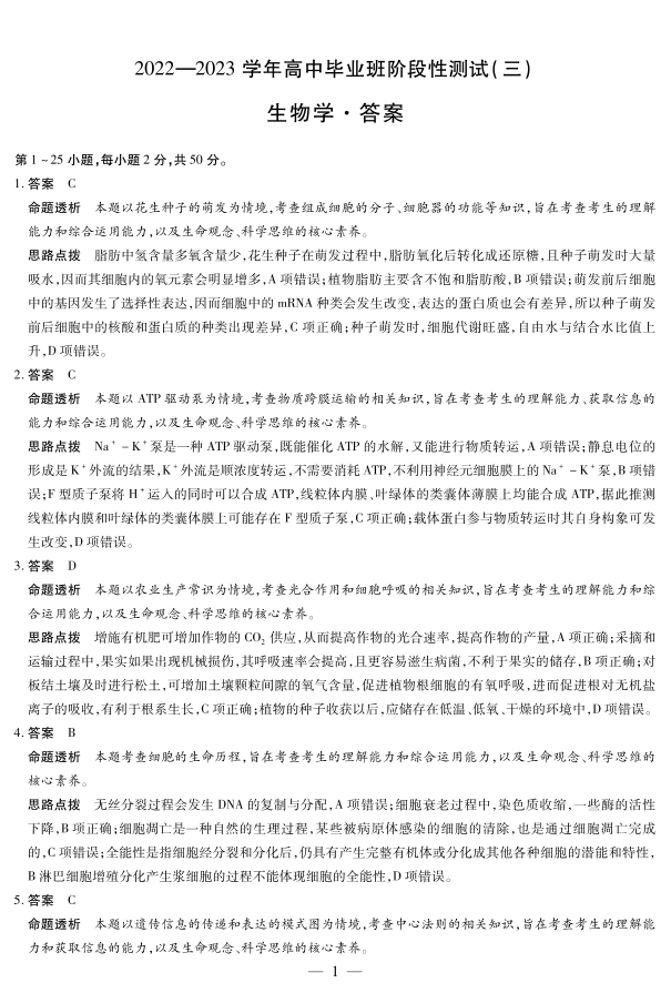 河南省天一大联考2023-2024学年高三上学期阶段性测试(三)生物答案
