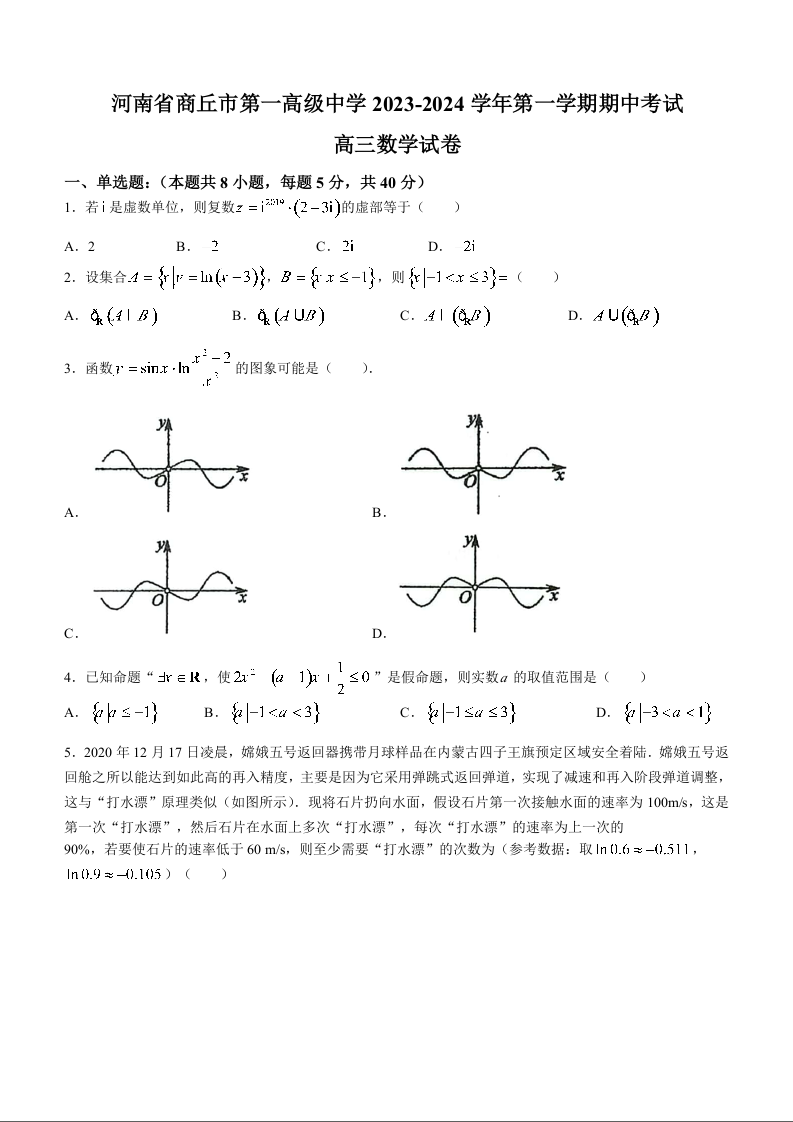 河南省商丘市第一高级中学2023-2024学年第一学期期中考试 数学