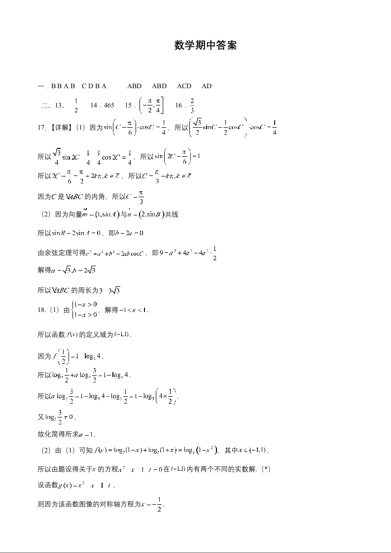 河南省商丘市第一高级中学2023-2024学年第一学期期中考试 数学答案
