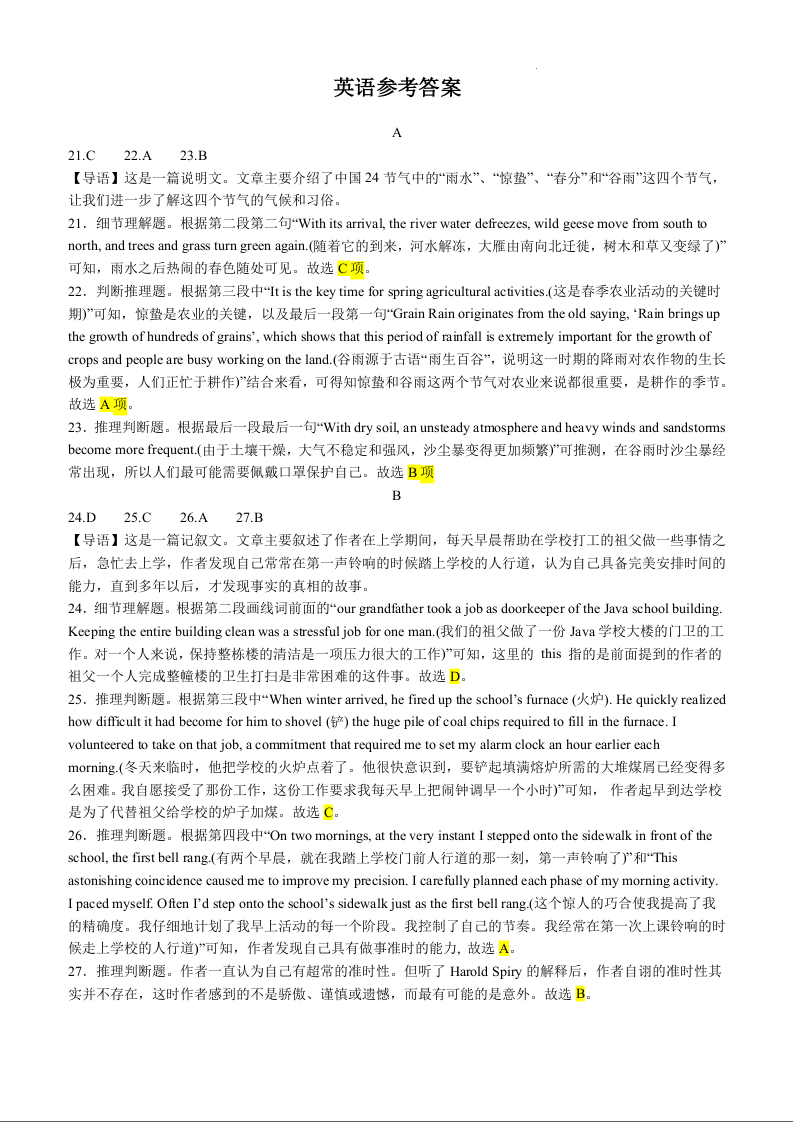 河南省商丘市第一高级中学2023-2024学年第一学期期中考试 英语答案