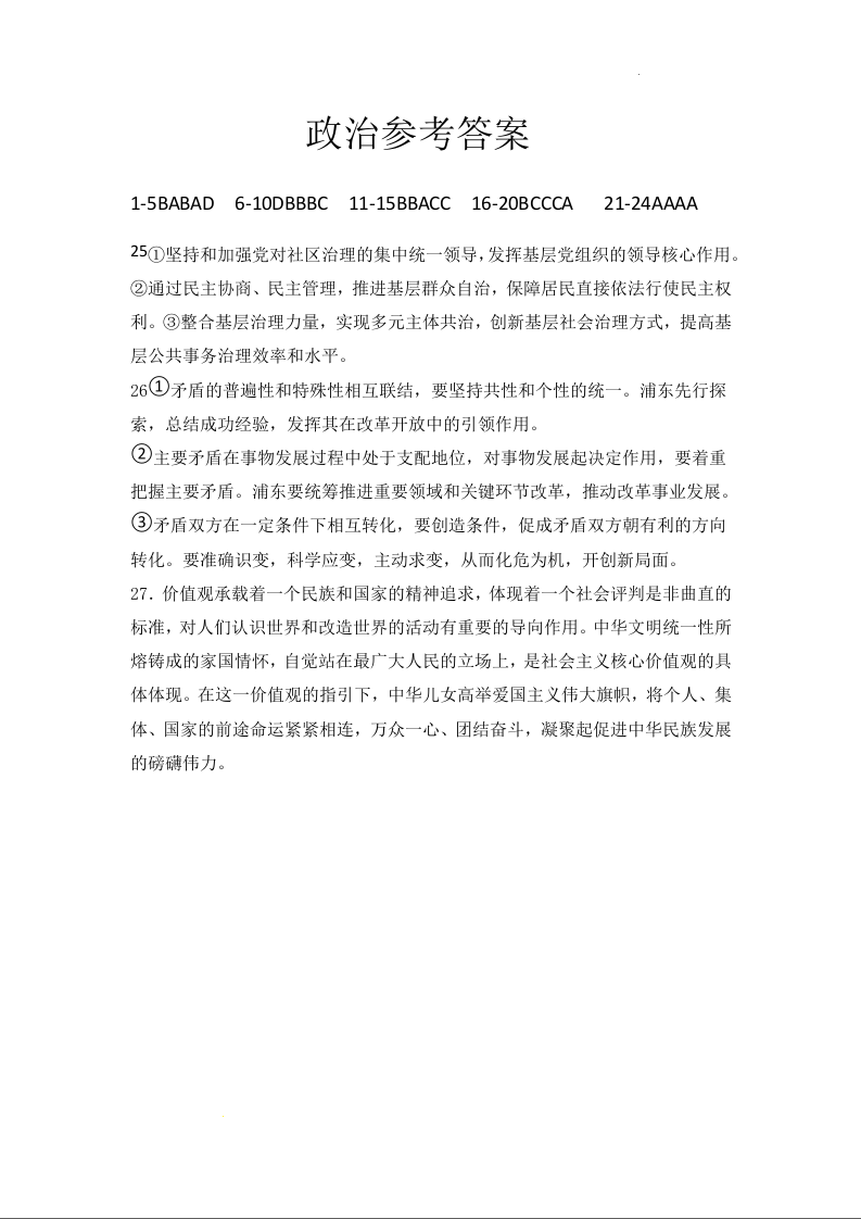 河南省商丘市第一高级中学2023-2024学年第一学期期中考试 政治答案