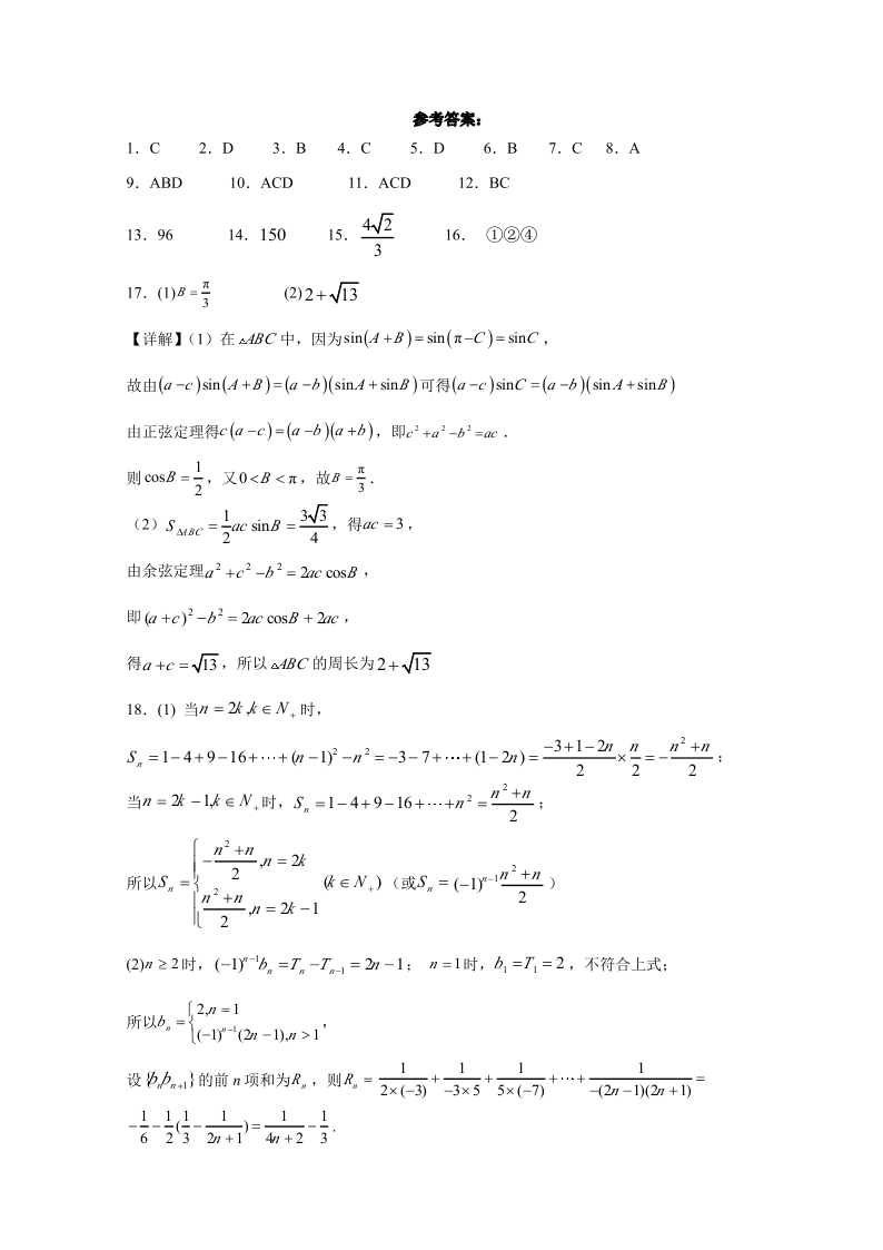 河南省实验中学2023-2024学年高三上学期期中考试 数学答案