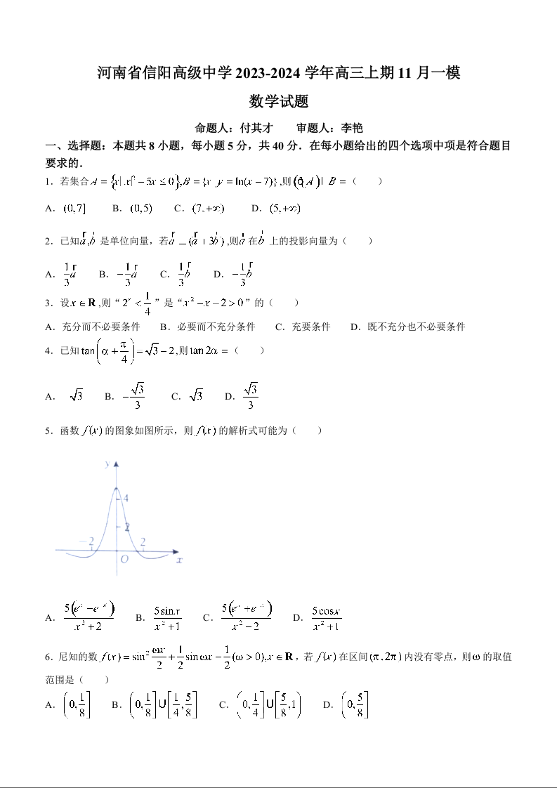 河南省信阳市信阳高级中学2023—2024学年高三上学期第一次模拟 数学
