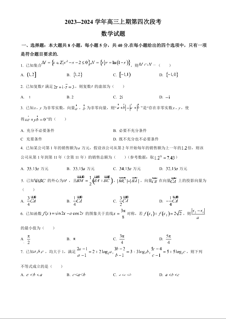 河南省周口市项城市第一高级中学2023-2024学年高三上学期11月期中考试 数学