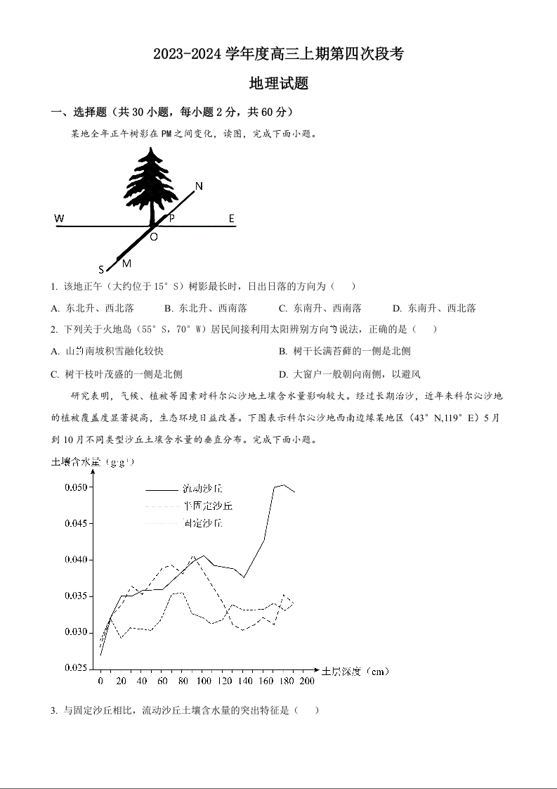 河南省周口市项城市第一高级中学2023-2024学年高三上学期11月期中考试 地理