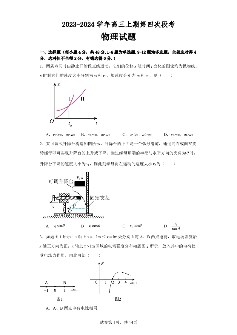 河南省周口市项城市第一高级中学2023-2024学年高三上学期11月期中考试 物理