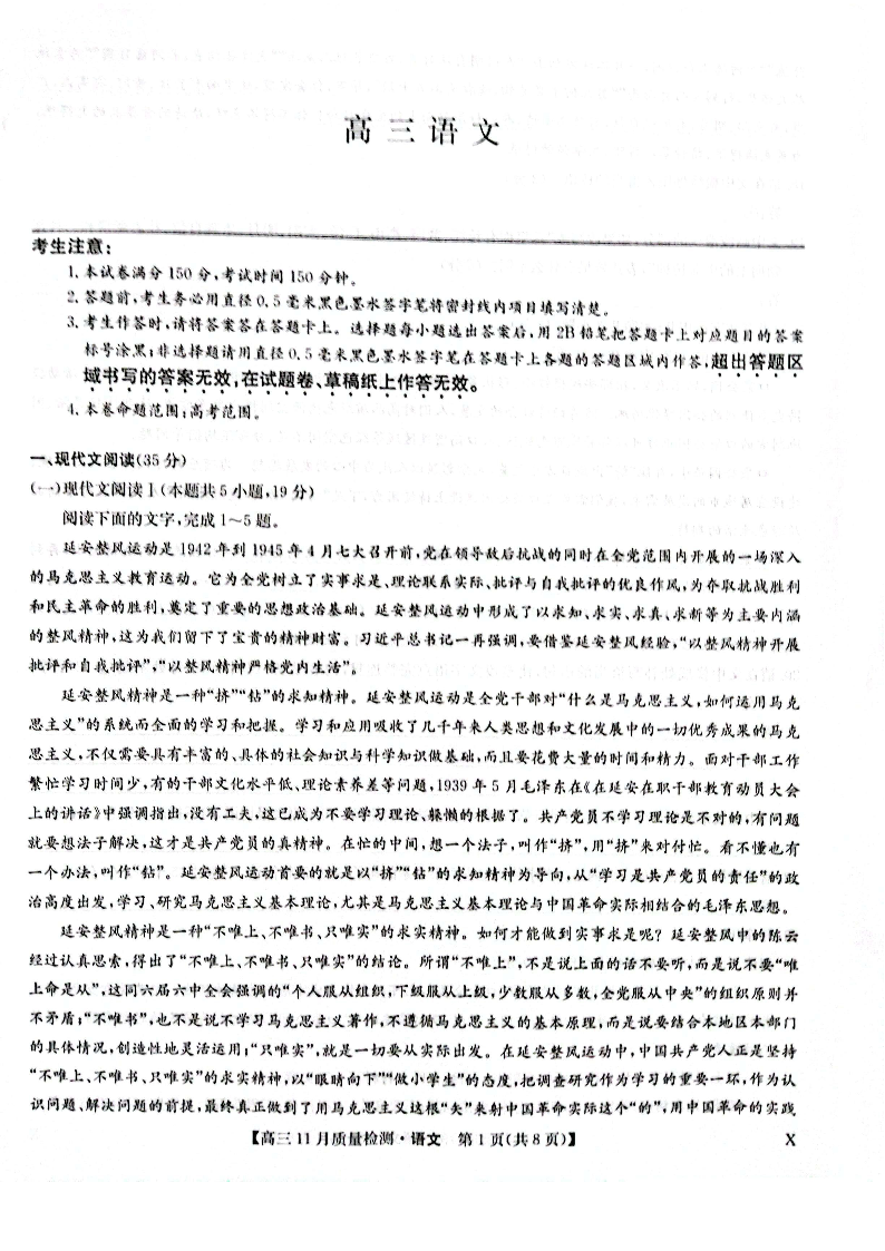河南省金科·新未来2023-2024学年高三上学期11月联考 语文