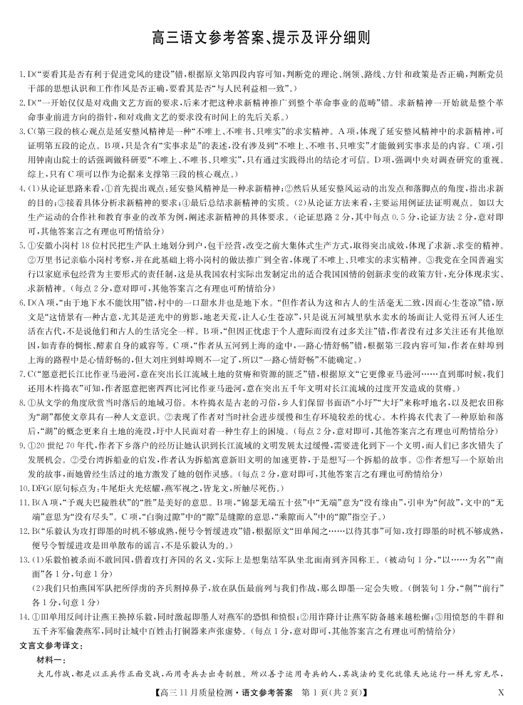 河南省金科·新未来2023-2024学年高三上学期11月联考 语文答案