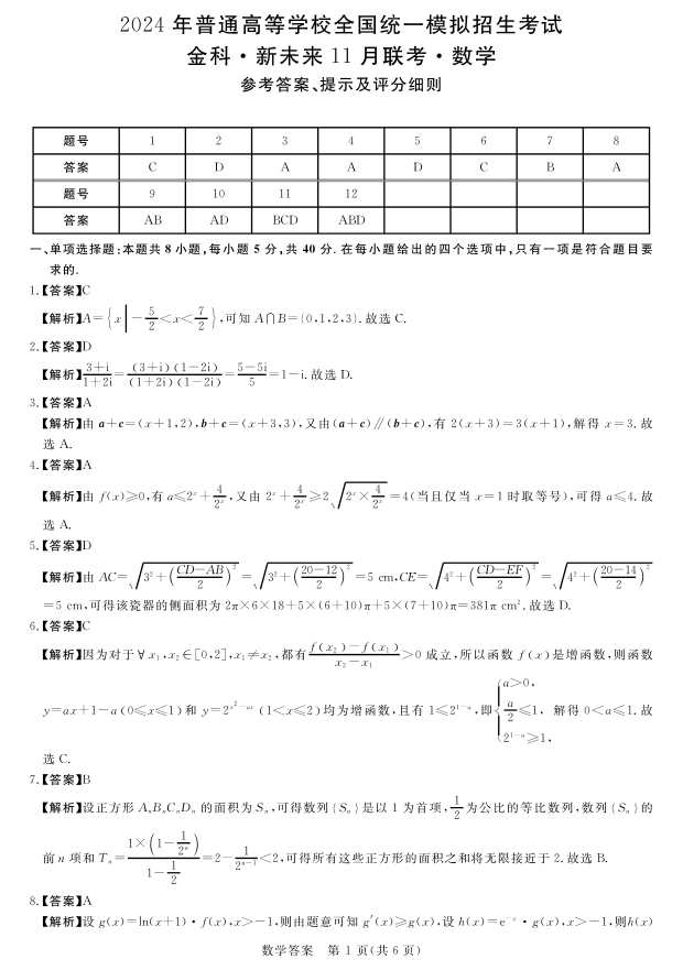 河南省金科·新未来2023-2024学年高三上学期11月联考 数学答案