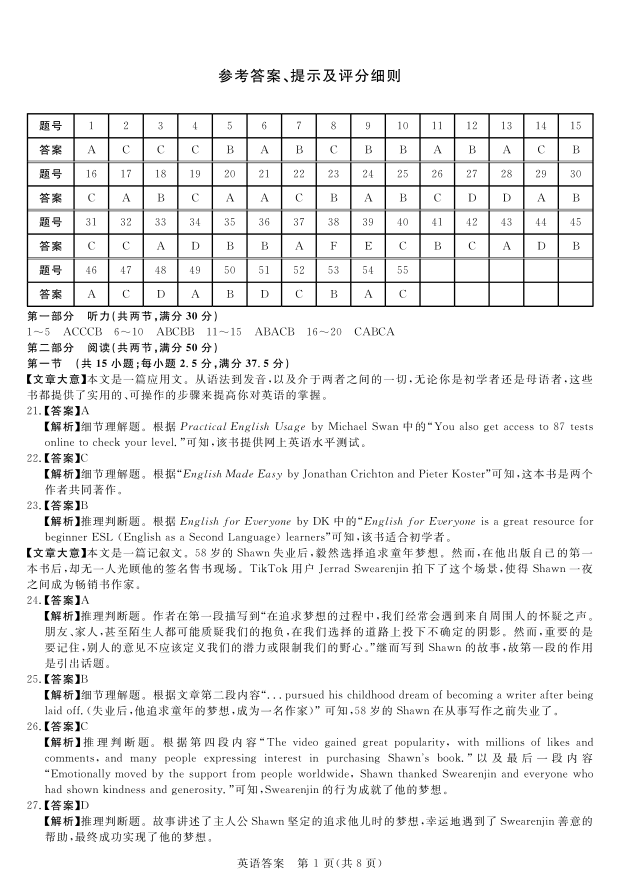 河南省金科·新未来2023-2024学年高三上学期11月联考 英语答案