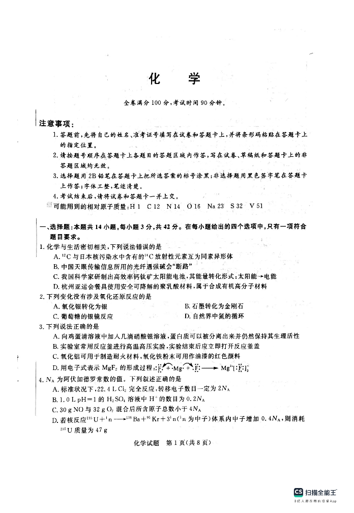 河南省金科·新未来2023-2024学年高三上学期11月联考 化学