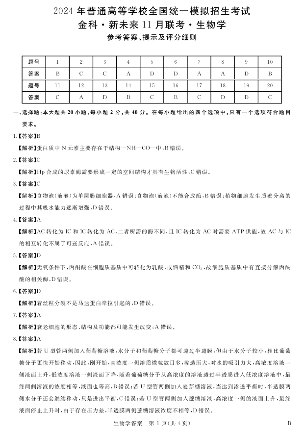 河南省金科·新未来2023-2024学年高三上学期11月联考 生物答案