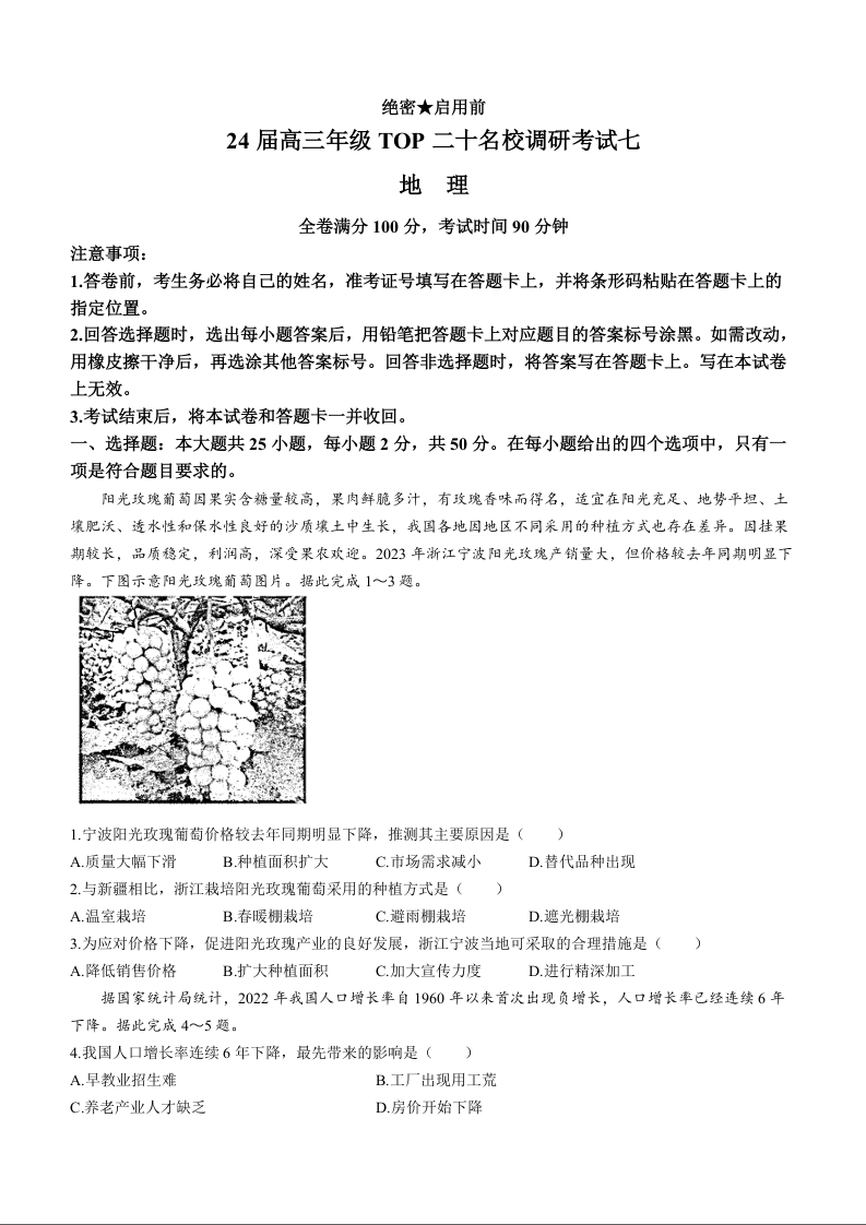 河南省新高中创新联盟TOP二十名校计划2023-2024学年高三上学期11月调研考试 地理