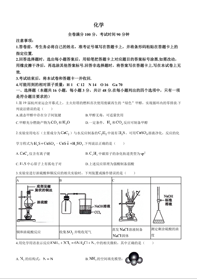 河南省新高中创新联盟TOP二十名校计划2023-2024学年高三上学期11月调研考试 化学
