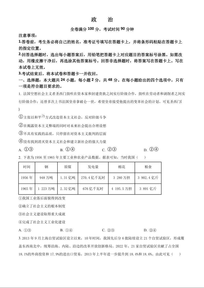 河南省新高中创新联盟TOP二十名校计划2023-2024学年高三上学期11月调研考试 政治