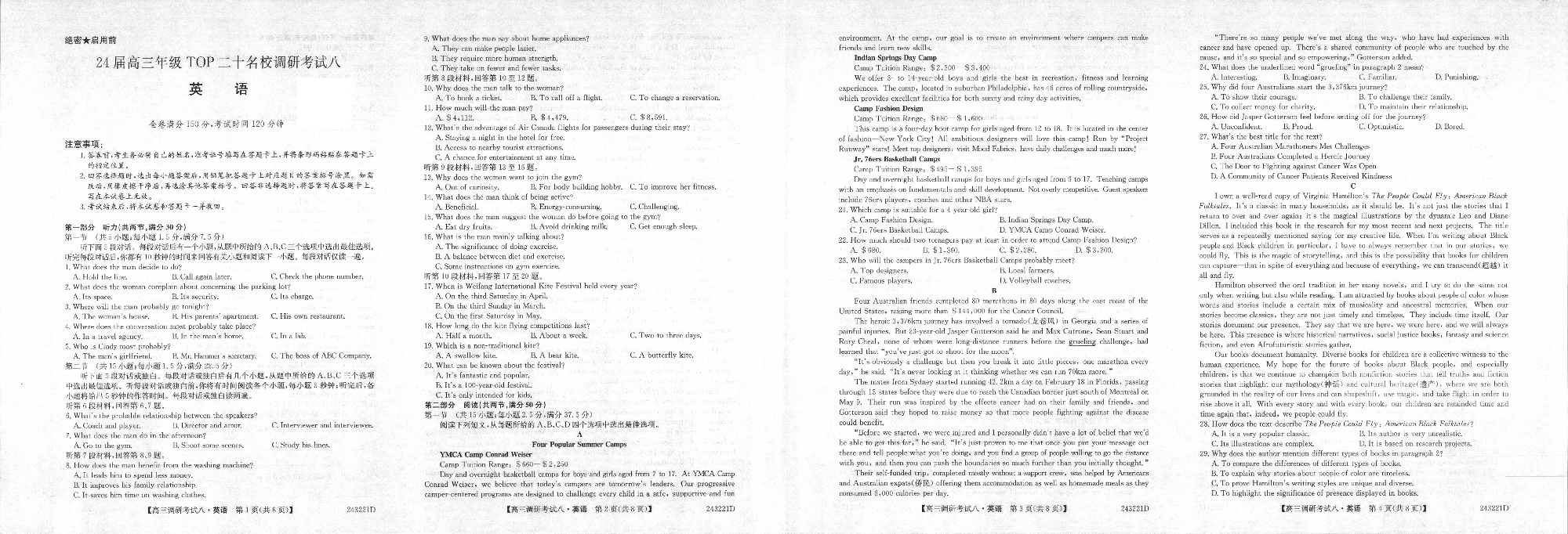 河南省TOP二十名校2023-2024学年高三上学期调研考试(八)英语