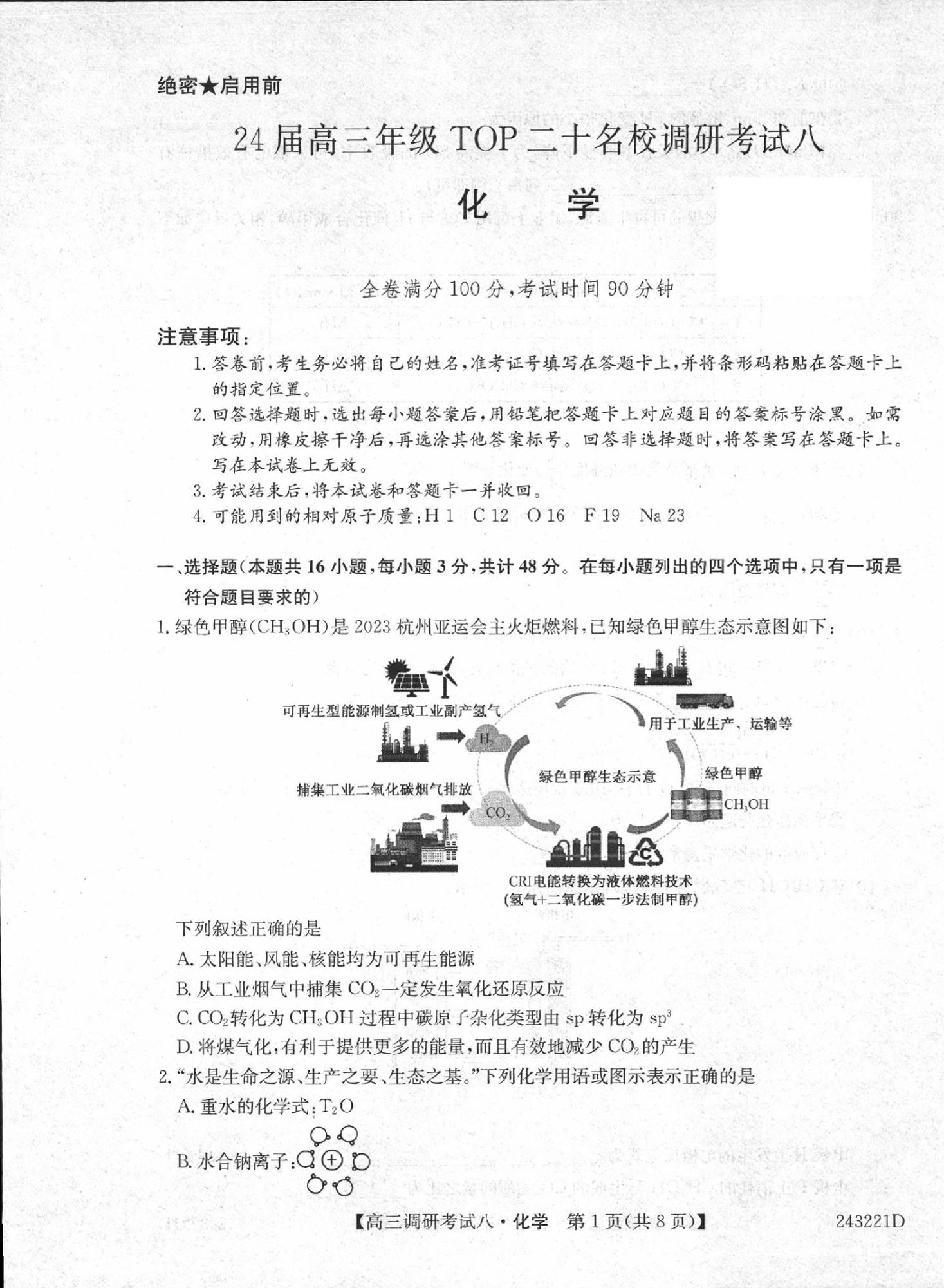 河南省TOP二十名校2023-2024学年高三上学期调研考试(八)化学