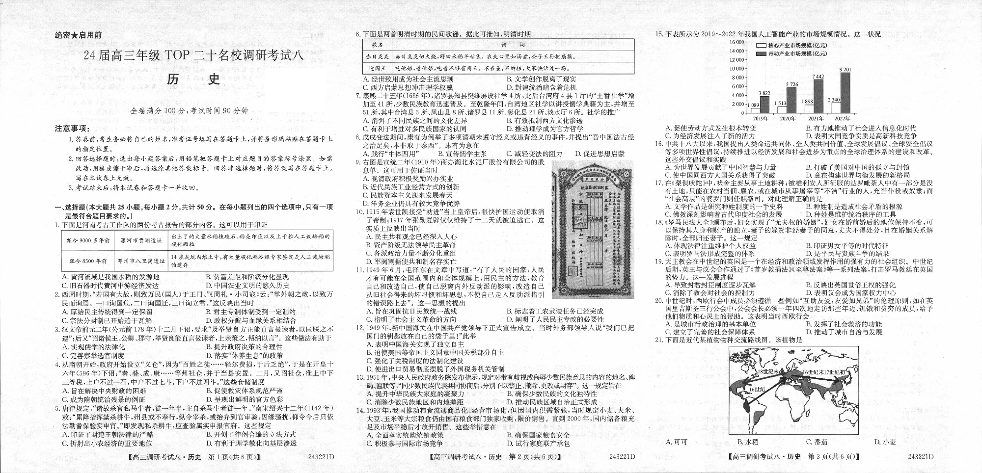 河南省TOP二十名校2023-2024学年高三上学期调研考试(八)历史