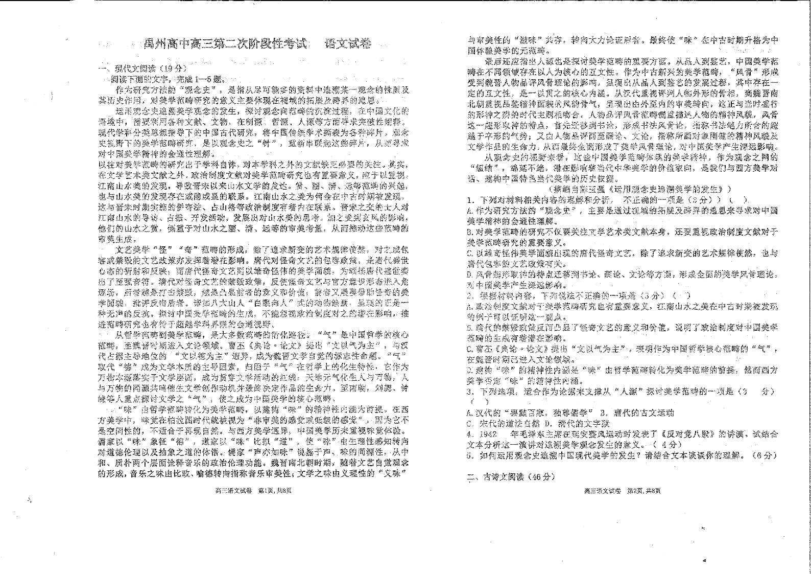 河南省许昌市禹州市高级中学2024届高三上学期11月月考 语文