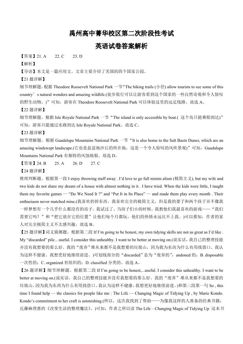 河南省许昌市禹州市高级中学2024届高三上学期11月月考 英语答案
