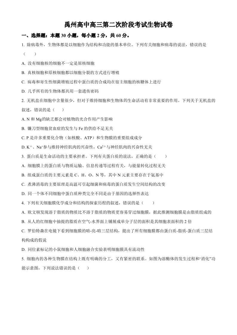 河南省许昌市禹州市高级中学2024届高三上学期11月月考 生物