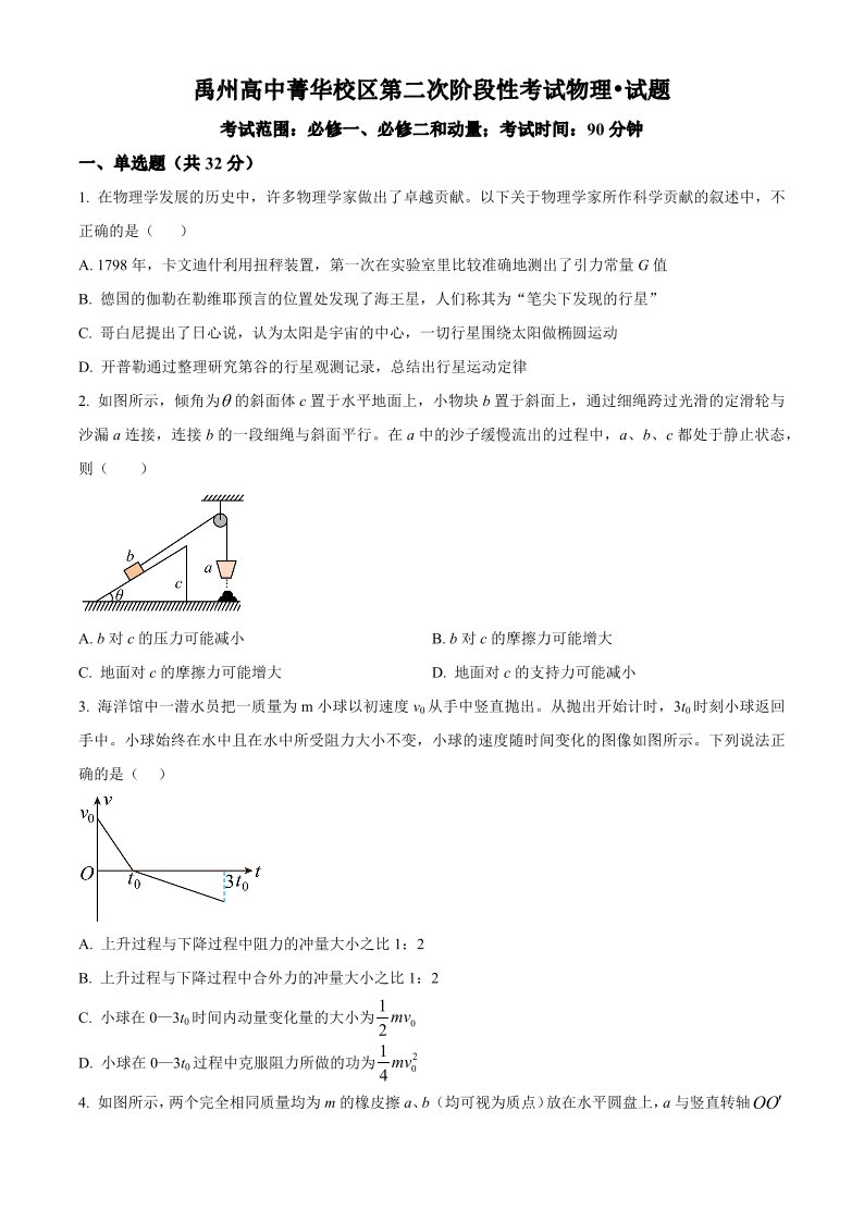 河南省许昌市禹州市高级中学2024届高三上学期11月月考 物理