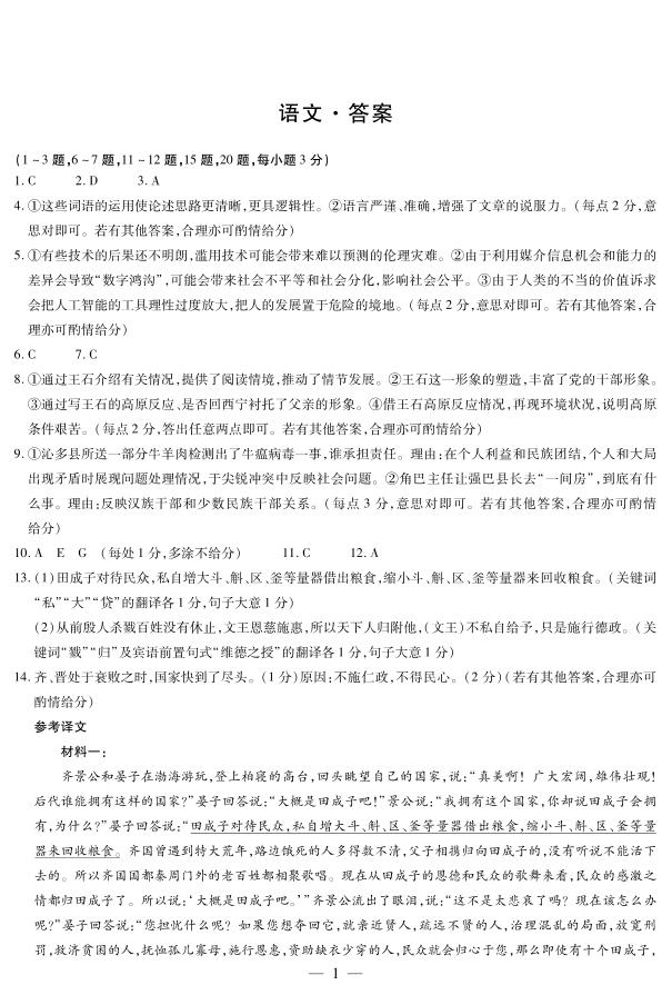 天一大联考·2023-2024学年高中毕业班阶段性测试(四)语文答案
