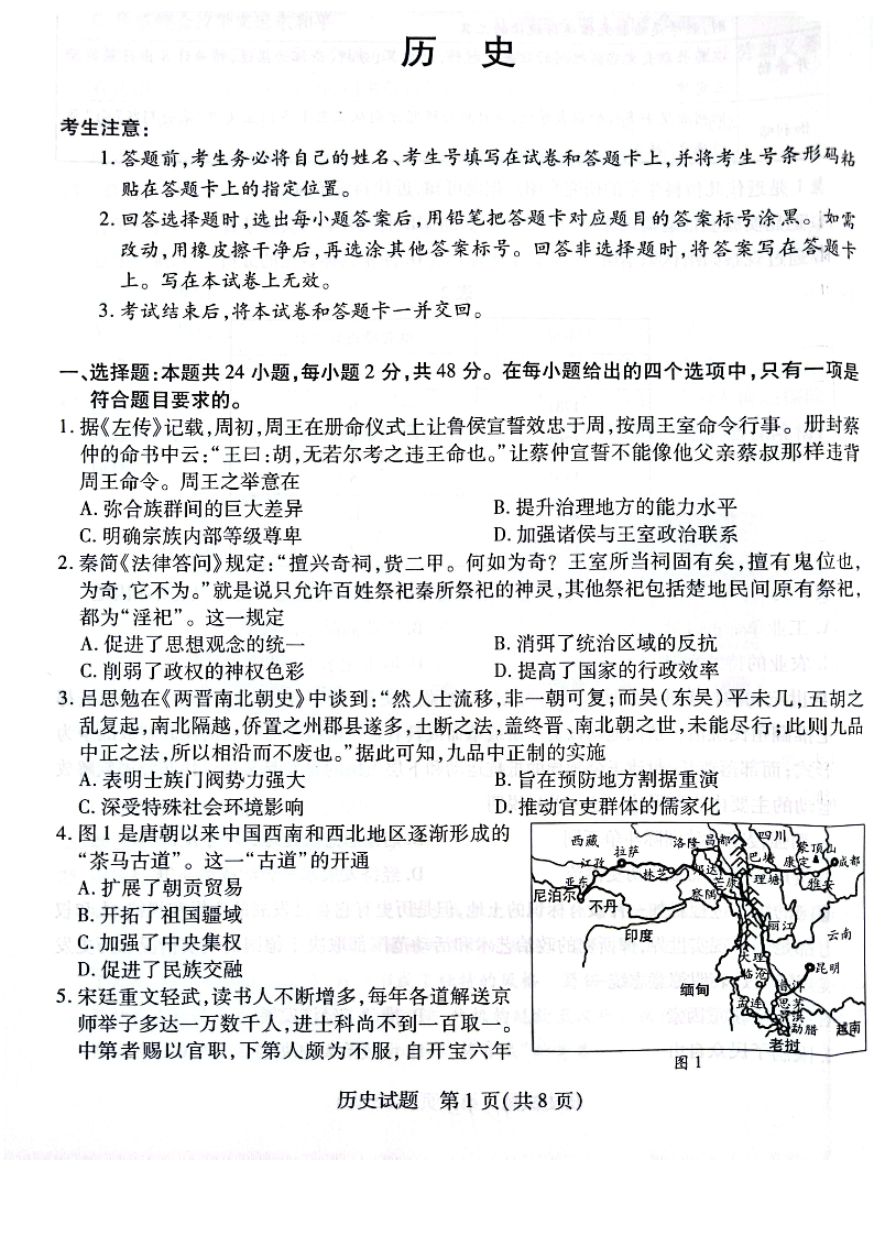 天一大联考·2023-2024学年高中毕业班阶段性测试(四)历史