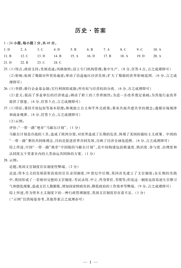 天一大联考·2023-2024学年高中毕业班阶段性测试(四)历史答案