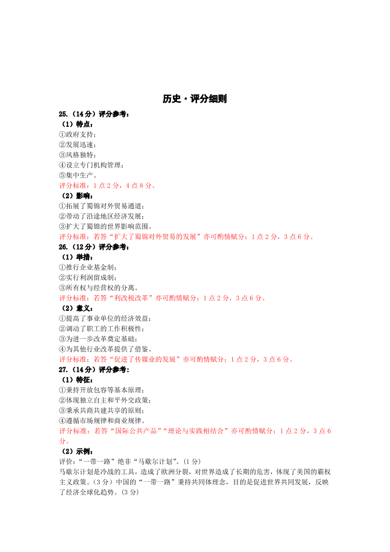 天一大联考·2023-2024学年高中毕业班阶段性测试(四)历史评分细则
