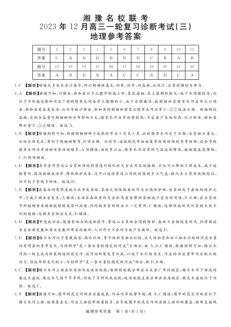 湘豫名校联考2023-2024学年12月高三一轮复习诊断考试(三)地理答案