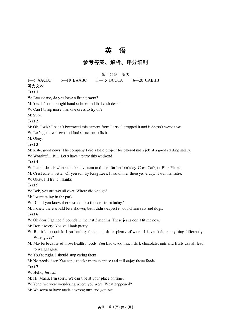菁师联盟·河南省2023-2024学年高三上学期12月学情调研 英语答案