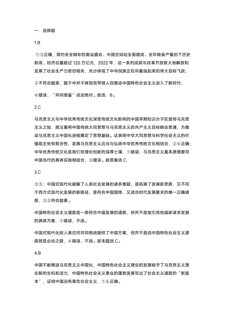 河南省周口市项城市第三高级中学2023-2024学年高三上学期第三次段考 政治答案
