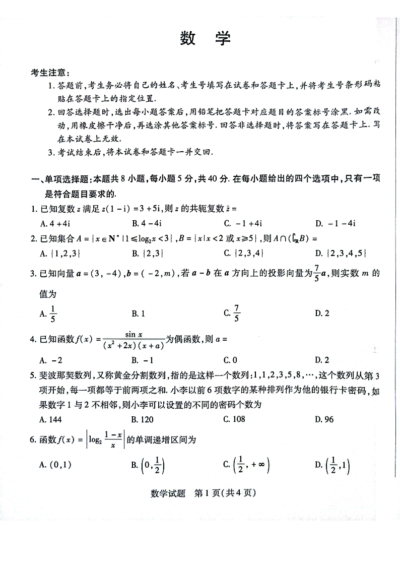 天一大联考顶尖联盟2024届高三阶段性测试(二)数学
