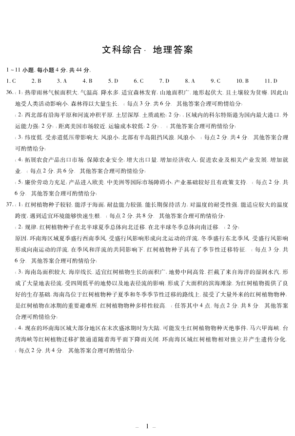 天一大联考顶尖联盟2024届高三阶段性测试(二)文综地理简易答案