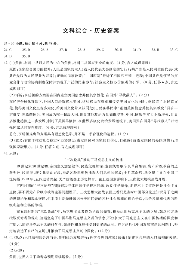 天一大联考顶尖联盟2024届高三阶段性测试(二)文综历史简易答案