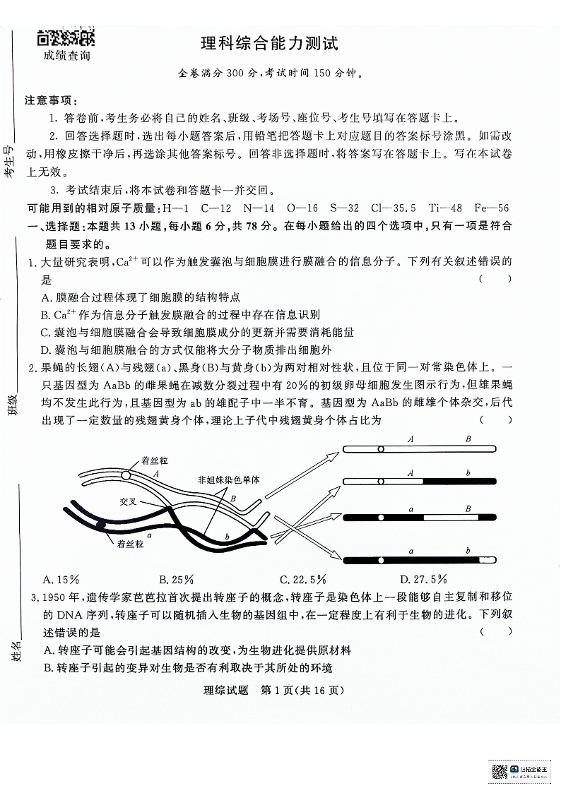 河南省中原名校2023-2024学年高三下学期3月联考 理综
