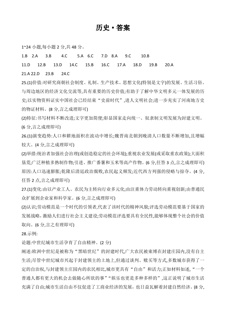 河南省天一大联考2023-2024学年高三上学期阶段性测试(二)历史答案