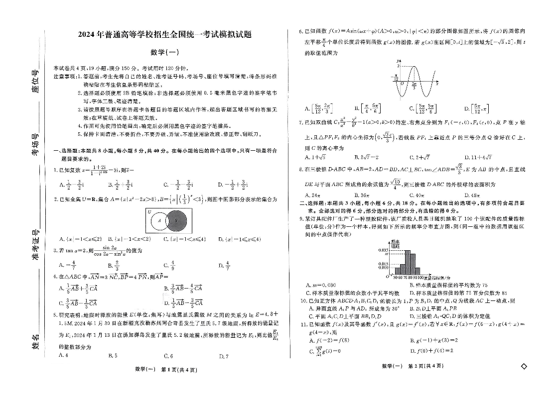 衡水名师卷·2023-2024高考模拟压轴卷(一)数学