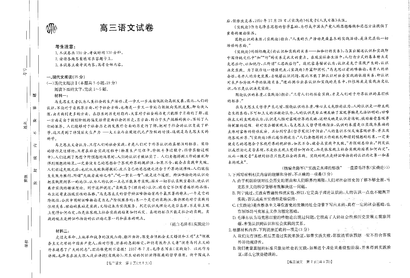 河南省金太阳2024-2025学年高三年级上学期开学联考+语文