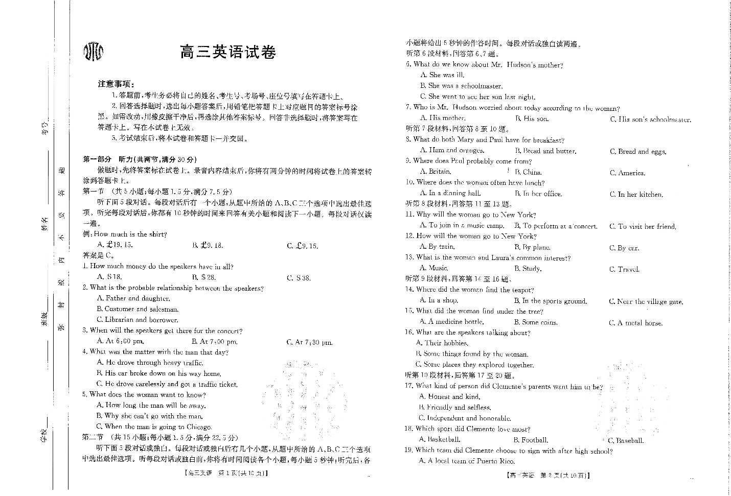河南省金太阳2024-2025学年高三年级上学期开学联考+英语