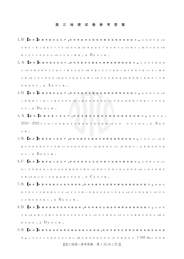 河南省金太阳2024-2025学年高三年级上学期开学联考+地理答案