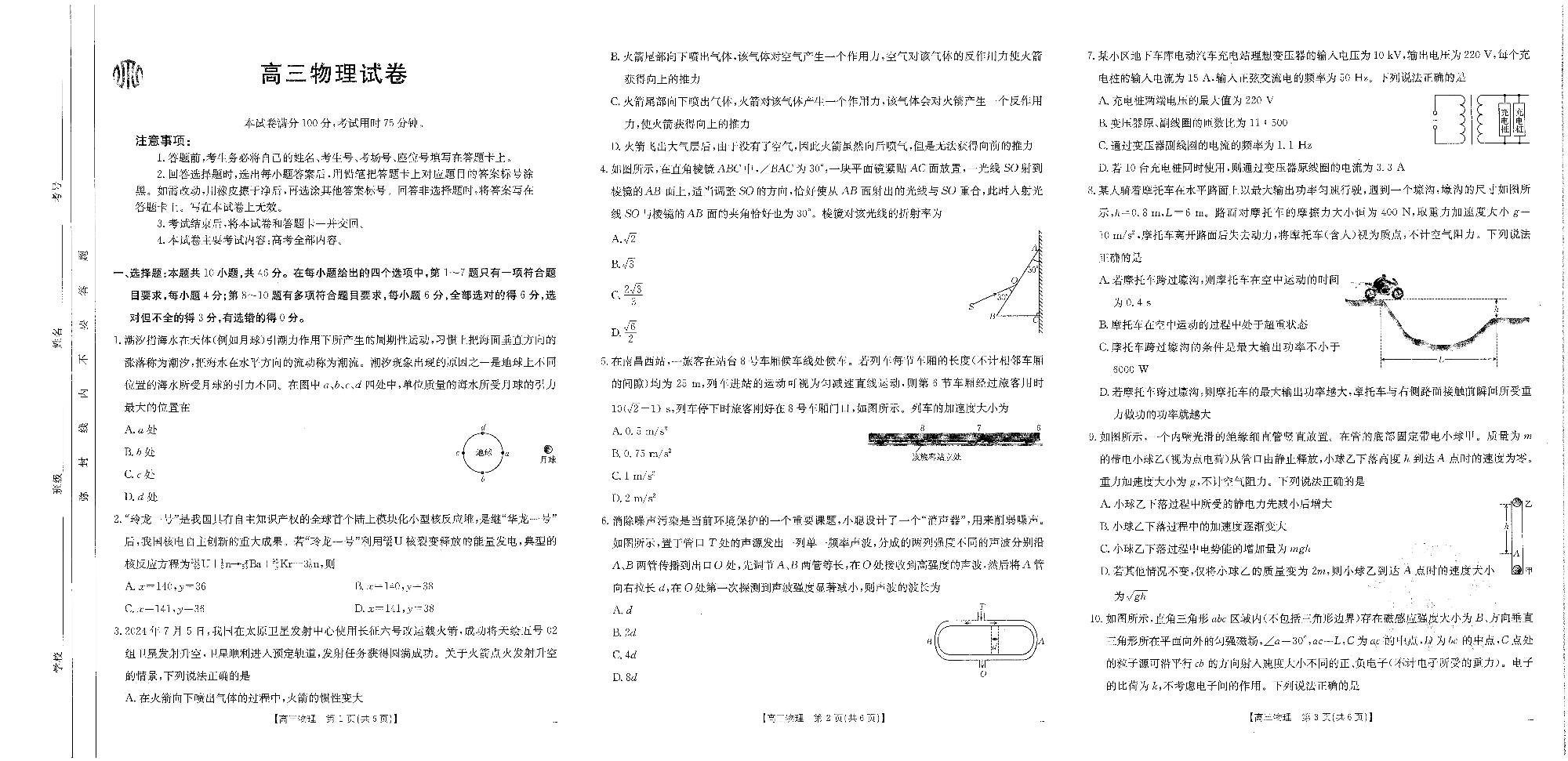 河南省金太阳2024-2025学年高三年级上学期开学联考+物理